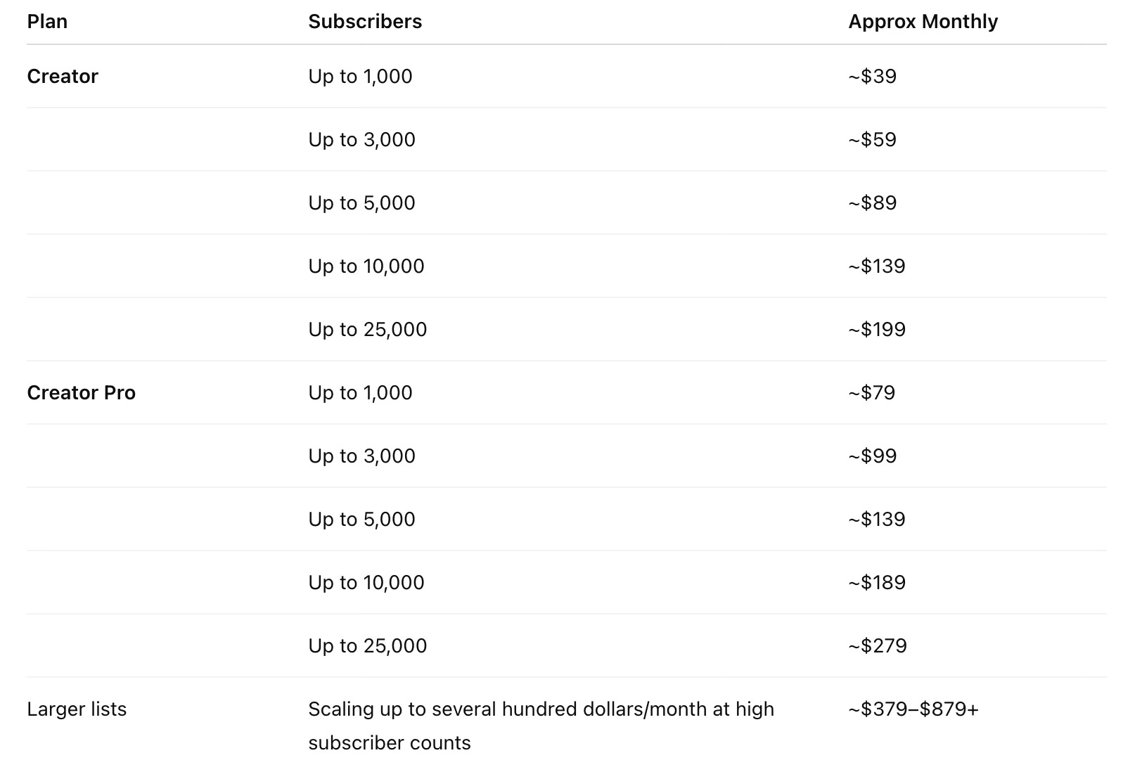 Kit (ex-ConvertKit). Subscriber-Tiered Pricing