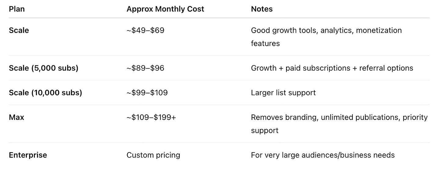 (Actual prices vary with subscriber count and billing frequency - these are typical mid-tier examples.)