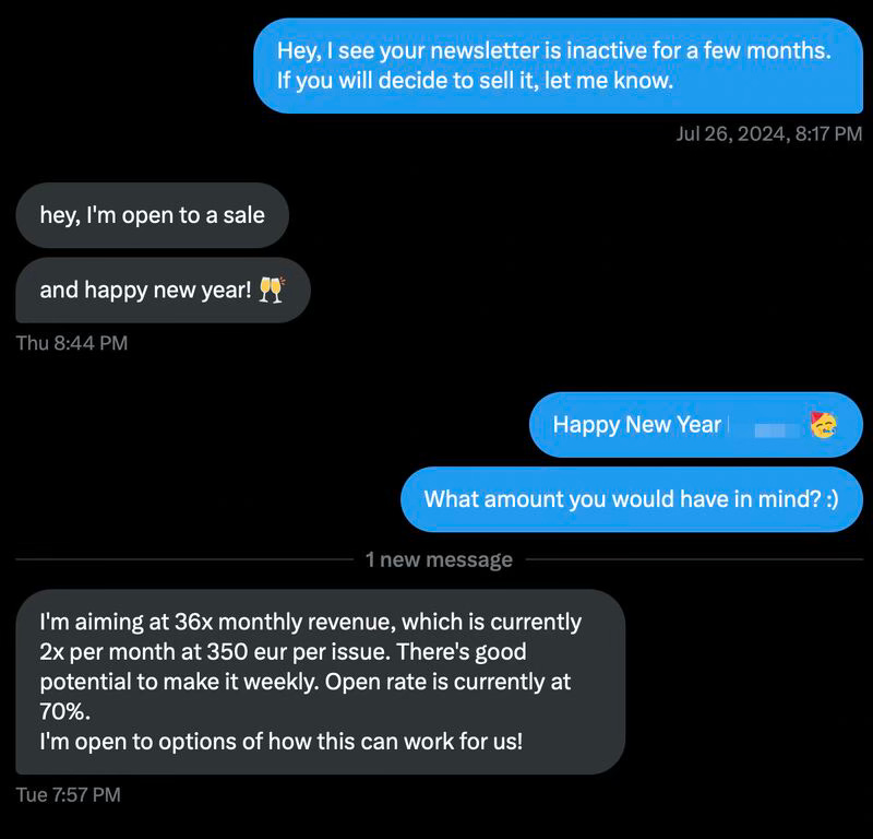 All 4 newsletters I run were acquired. The previous owners didn’t want to continue, grow, or monetize them anymore. I paid anywhere from $1,000 to $25,000 for each of them.