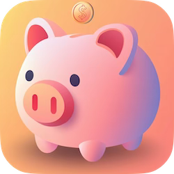 “App icon for a budget planner app with a piggy bank and a background with orange colors in a modern minimalist style”