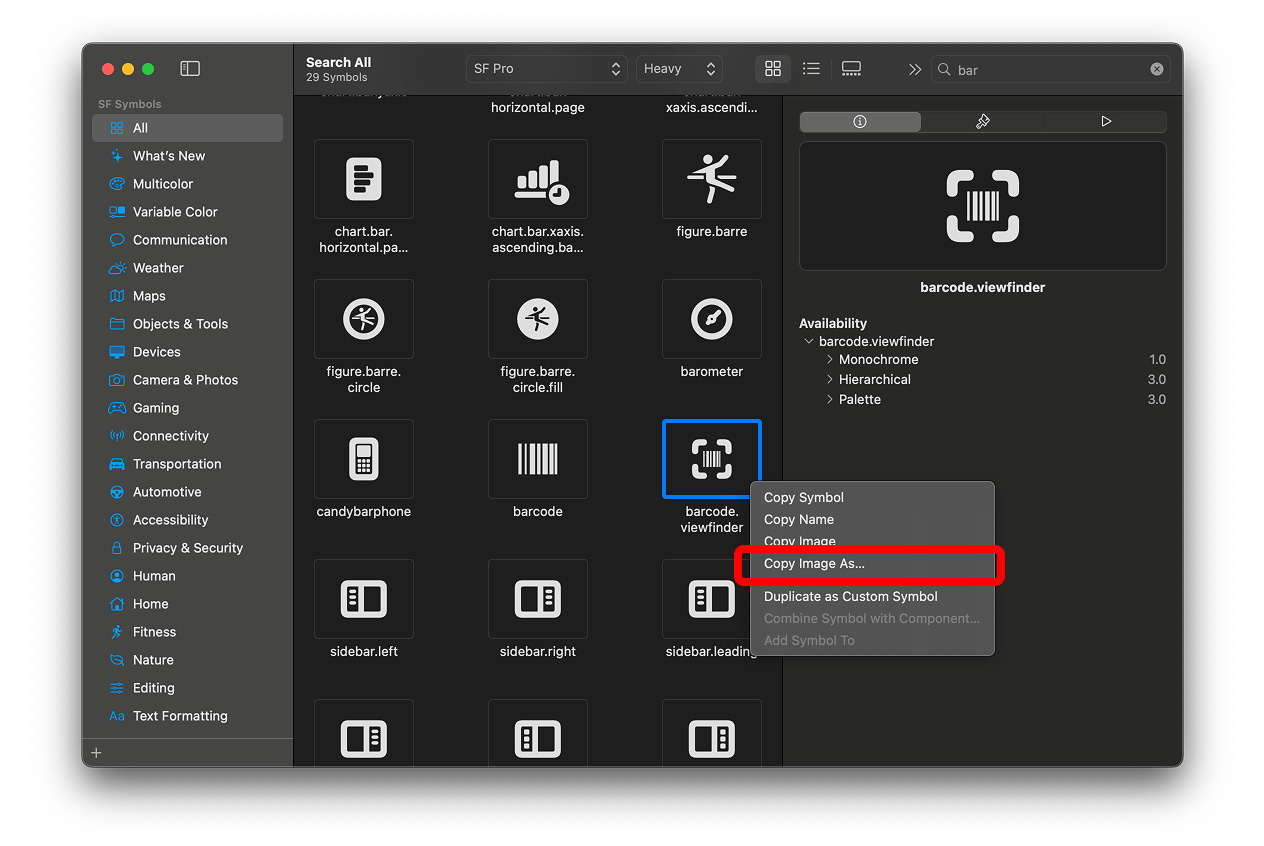 Go to Apple’s SF Symbols library and pick an icon that represents what your app solves.
