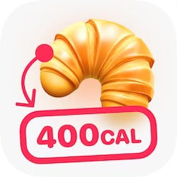 The icon result? A big croissant generated using the Midjourney prompts I shared above, with a bold arrow pointing to a red label displaying the calories.