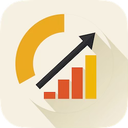 “Flat 2d minimalistic icon with charts with one big arrow, orange and yellow”